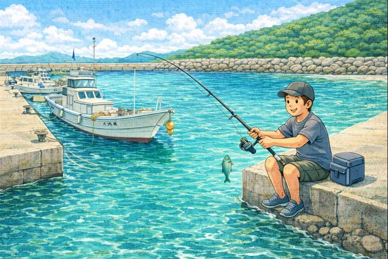 地元釣り人にも人気の漁港で、魚影が濃く安定した釣果が見込めます。港内は波が穏やかで、子供連れでも安心。漁港周辺には食堂やコンビニもあり、観光ついでの立ち寄りにも便利です。